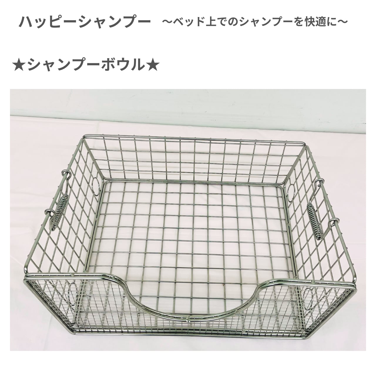 シャンプー台や洗面台等でのシャンプーが困難な方にも、ベッド上で安楽な姿勢で快適なシャンプーを提供するために開発されました。